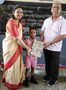 शाळेचे संस्थापक सचिव श्री गोविंद राव दाभाडे यांच्या हस्ते उपस्थित मुलांना पहिल्याच दिवशी मोफत पाठ्यपुस्तके देण्यात आली. त्याचबरोबर सर्व मुलांना शैक्षणिक साहित्य शाळेतर्फे देण्यात आले. पहिल्याच दिवशी पुस्तके मिळाल्यामुळे विद्यार्थ्यांचा आनंद द्विगुणीत झाला.