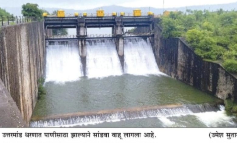 त्यातच मॉन्सूनचे आगमन झाल्याने धरण जून महिन्यातच पूर्ण क्षमतेने भरले आहे. धरणाचे पाणलोट क्षेत्रात कमी-जास्त पडत असलेल्या पावसाने धरण पूर्ण क्षमतेने भरल्याने सांडव्याद्वारे पाण्याचा विसर्ग होऊ लागला आहे. परिसरात पडलेल्या मुसळधार पावसामुळे धरणाचे पाणी पातळीत वाढ होऊन क्षमतेपेक्षा जास्त प्रमाणात पाणीसाठा झाल्याने सांडव्यातून पाणी बाहेर पडू लागले आहे. त्यामुळे उत्तरमांड नदीपात्रात पाणी पातळीत कमालीची वाढ झाला आहे.