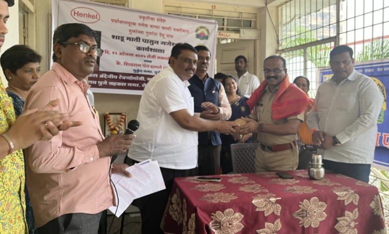 पुणे-गुलटेकडी/प्रतिनिधी : येथील महाराष्ट्रीय मंडळाच्या कै. कॅ. शिवरामपंत दामले प्रशालेचे मार्गदर्शक मा. मुख्याध्यापक श्री. रमेश वसईकर सर यांच्या अध्यक्षतेखाली व जेजुरी खंडोबा देवस्थानचे ट्रस्टचे माजी अध्यक्ष डॉ. श्री. प्रसाद खंडागळे, हेन्कल अदेजीव टेक्नॉलॉजी, भारत विकास परिषद, रोटरी क्लब पुणे, लायन्स क्लब, सहकार नगर यांच्या संयुक्त विद्यमाने श्री गणेशोत्सवाच्या पार्श्वभूमीवर विद्यार्थ्यांमध्ये पर्यावरण रक्षण व संवर्धनाचे महत्व समजावे व ‘पर्यावरण रक्षण हेच आमचे शिक्षण’ मूल्ये विद्यार्थ्यांमध्ये रुजवण्यासाठी शाडू माती पासून गणेश मूर्ती कार्यशाळाचे आयोजन दामले प्रशालेमध्ये करण्यात आले होते.