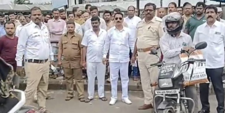 खारघर/प्रतिनीधी : बाईक टॅक्सीला परवानगी नाही, परंतू तरी देखील सर्रासपणे अनाधिककृत बाईक, टॅक्सी नवी मुंबई मध्ये सुरू आहेत. खारघर रेल्वेस्टेशन येथे बैठकी वेळी अनाधिकृत बाईक टॅक्सी पकडून कारवाई करण्यासाठी पोलिसांच्या स्वाधीन करण्यात आलीअसल्याची माहिती महासंघाचे अध्यक्ष कासम मुलानी यांनी सांगीतले.